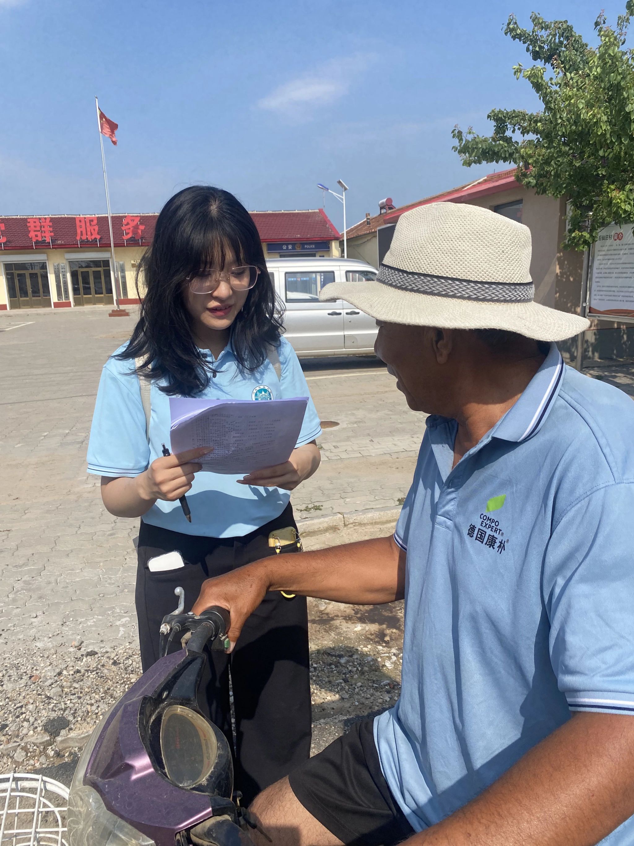 实践队员深入旧城镇仙庄片区的农户家中,展开深入的调查访谈。一位老农讲到:“上世纪80年代,我们用‘挖沟排盐’‘秸秆还田’土办法,一亩地只能收百斤粮;现在有了暗管排盐、耐盐品种,年轻人用无人机打药、北斗导航耕地,这变化做梦都不敢想!”农民朴实而充满力量的话语, 深深震撼了在场的每一位实践队员,它让书本上的理论、政策文件里的部署,瞬间变得具体可感。 同学们真切体会到,正是党的强农惠农政策、农业科技的突破性进展和一代代农人、科技工作者的接续奋斗,才将昔日的不毛之地变成了今日的“希望田野”,也更加深刻地理解了“藏粮于地、藏粮于技”战略沉甸甸的分量。