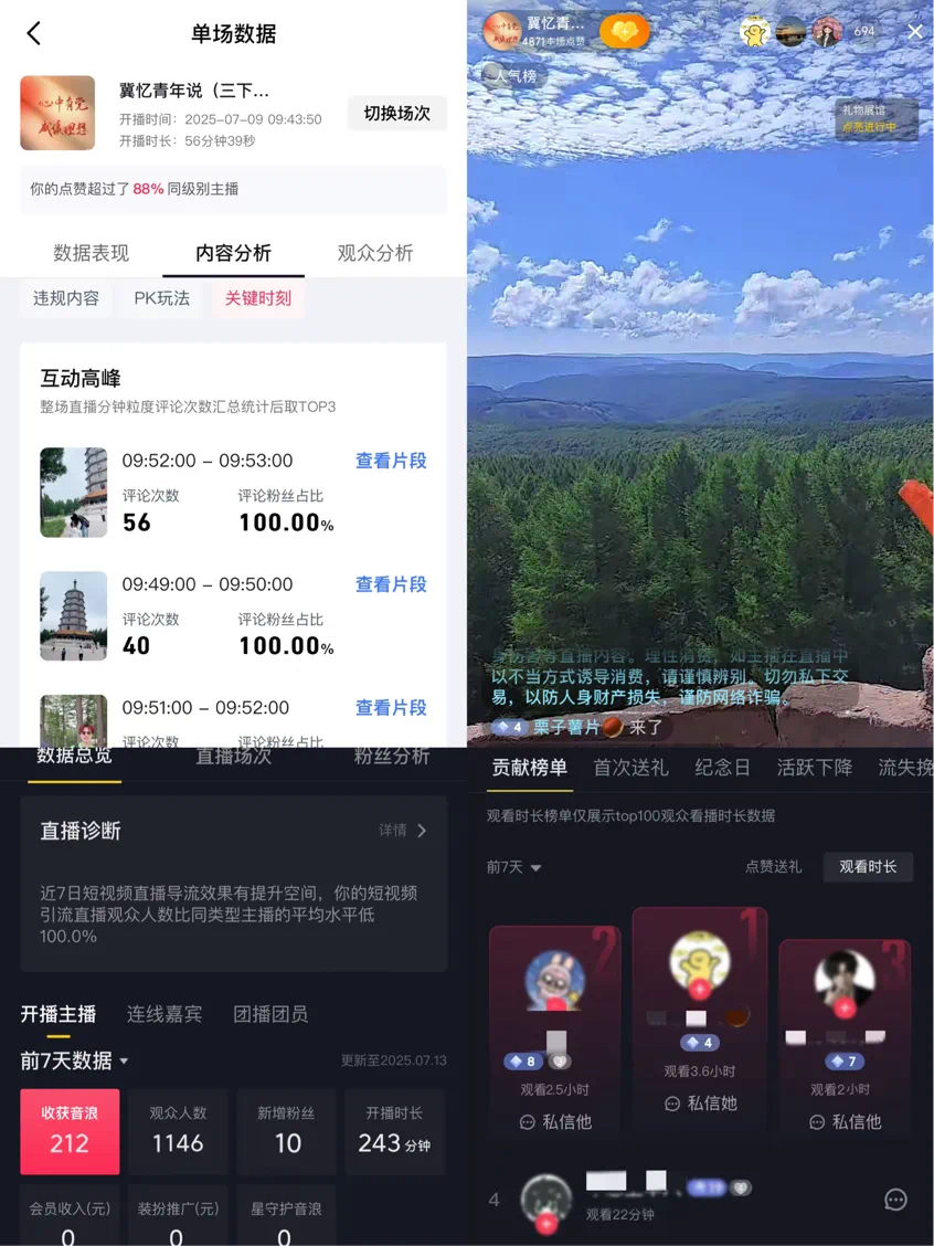 实践队充分发挥新媒体优势,成为塞罕坝故事的“青春传声筒”。调研期间,团队制作并发布高质量调研Vlog 多部、主题纪录片1部、科普图文15篇,在抖音、小红书、B站等平台累计获得播放/阅读量突破万次,互动点赞超千次。话题引发网络热议,有效打破了地域限制,成功吸引数万名青年网友关注塞罕坝生态成就,显著提升了生态文明理念在年轻群体中的传播广度与深度。