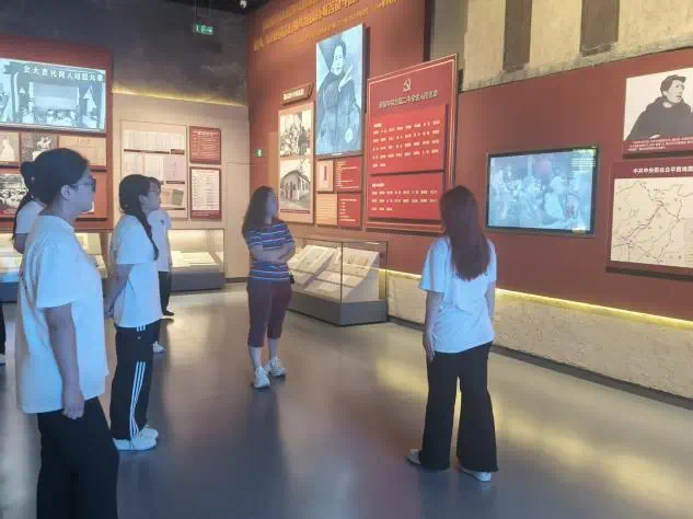 成果展示,收获颇丰。7月12日,经管学院团委书记兼学工办主任赵佳兴老师、辅导员何思欢老师来到纪念馆检验同学们的实践成果。队员们围绕石家庄的战略地位、“石门风雨路”的革命火种播撒,以及解放后的城市发展图景,进行了富有深度的讲解展示。老师们对宣讲的专业水准、史实掌握的精准度及现场表现给予了高度肯定。