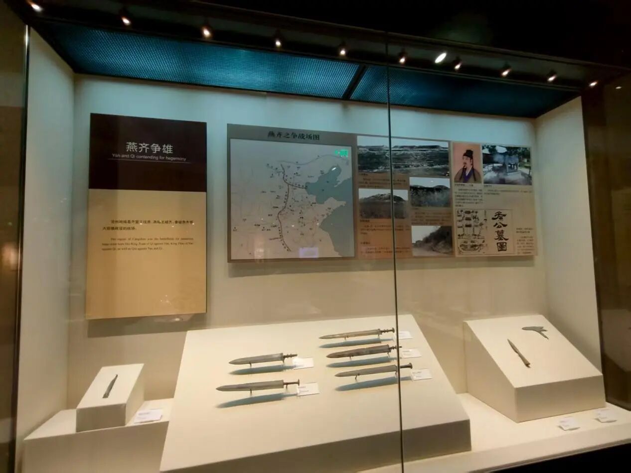 到沧州作为运河重镇的历史,探讨漕运、商埠文化对区域发展的影响。“武术与杂技”展区:通过武术器械、杂技道具等文物,他们感受了沧州民间体育文化的刚健与灵巧。“古代文明”展区:聚焦青铜器、陶器等,去解读燕赵文化中的礼乐传统与生活智慧。返程前,成员们驻足“燕齐都会”展板,开展“文化感悟会”预热。春秋战国时期沧州“三国疆域交错、城池商贸繁荣”的历史,呼应实践全程:从“破冰挑战”的战国兵器线索,到“主题参观”的运河商贸影响,再到非遗传承思考,串联起沧州“历史沿革—文化积淀—当代传承”的文脉轨迹。这张展板成为实践总结的“文化坐标系”,让他们清晰锚定沧州文化传承的历史根基,为“如何带回校园”的讨论提供历史依据。