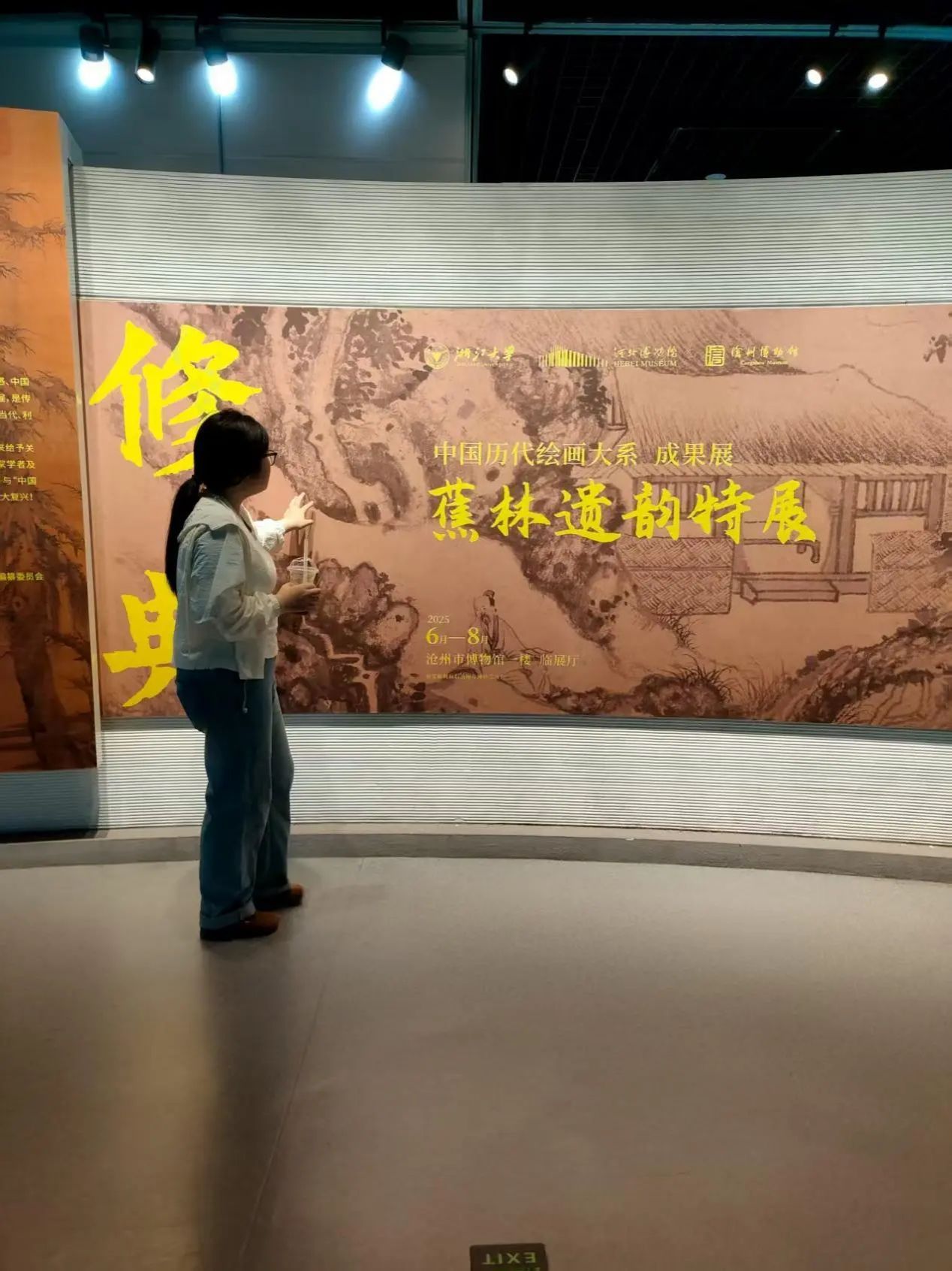 参观“古代文明”“大运河文明”等展区后,成员们打卡“中国历代绘画大系成果展·蕉林遗韵特展”序厅。“盛世修典”的策展主题,串联起沧州古今文化脉络——从古代燕齐争雄的历史厚重,到运河漕运的商贸繁荣,再到书画艺术传承的文脉延续,拓宽了他们对“沧州文化传承”的理解维度,为后续非遗交流、文化总结积淀视野。