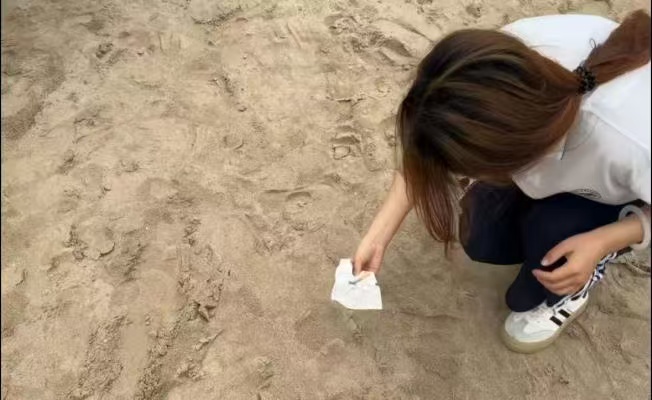 循着前日访谈中收集的民意期盼,8月26日的朝阳刚为海面镀上金边,实践团成员便带着工具奔赴浅水湾浴场,以“净滩行动”践行海洋保护的初心。团队成员们弯腰俯身,沿着滩涂的褶皱、礁石的缝隙与浅水区的边缘,将塑料瓶、废弃渔网等海洋垃圾一一拾起,再细心分类收纳。指尖沾染的泥沙,是与海洋最亲密的对话;袋中渐满的垃圾,是青春守护的坚实印记。这份执着不仅让海滩重拾洁净容颜,更如一束微光点亮了周围游客的心,感召多名群众加入清理行列,使“海洋保护”理念化作共同行动,在浪花与协作中,传递着守护蓝色家园的责任意识与坚定力量。