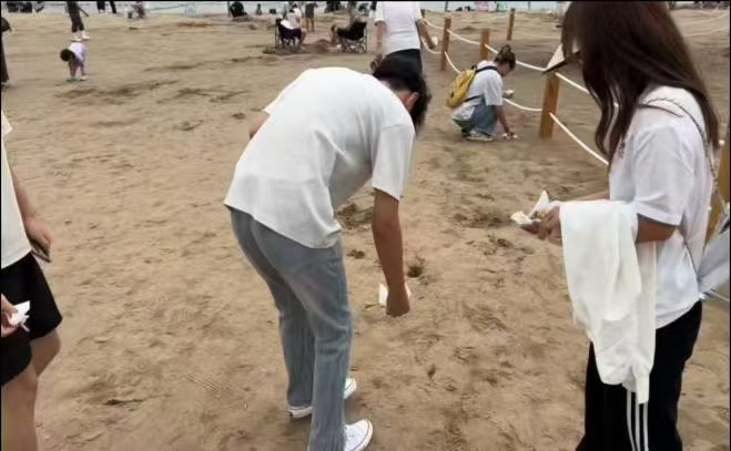 8月25日,海风轻拂着北戴河区浅水湾浴场的滩涂,实践团成员循着浪花的轨迹,开启了与海洋守护者的深度对话。实践团成员基于对海洋生态的关切,以个别访谈为桥梁,走近浴场工作人员、往来游客与周边社区居民,系统聆听不同群体对海洋保护政策的认知与思考,详细记录公众对蔚蓝海域的珍视与期许。二十余人次的深度交流,不仅精准勾勒出公众海洋保护意识的认知图景,更使团队在交流过程中明晰后续行动方向,为即将开展的实践活动奠定了数据基础与民意支撑。