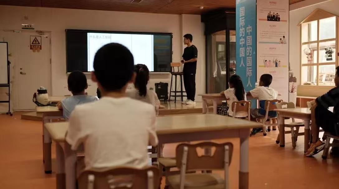 活动伊始,志愿者们精心为孩子们呈现了一场妙趣横生的AI科普讲堂。讲堂上,志愿者哥哥姐姐们用深入浅出、充满童趣的语言,配合着色彩缤纷的图片和引人入胜的视频短片,生动地描绘了人工智能从最初的构想萌芽到如今蓬勃发展的奇妙历程,并着重展示了AI如何悄然融入我们生活的方方面面——无论是家中能聊天、会放歌的智能语音小助手,还是街头酷炫的自动驾驶汽车;无论是勤勤恳恳帮我们打扫房间的扫地机器人,还是背后支撑着整个城市高效运转、能预知天气的“超级大脑”,都让孩子们真切地感受到:原来神奇的人工智能并非遥不可及,它就藏在我们身边触手可及的地方。小朋友们听得津津有味,小脸上写满了好奇与兴奋,不时有孩子高举小手,迫不及待地抛出自己天马行空的问题,现场互动热烈,洋溢着探索未知的浓厚氛围。