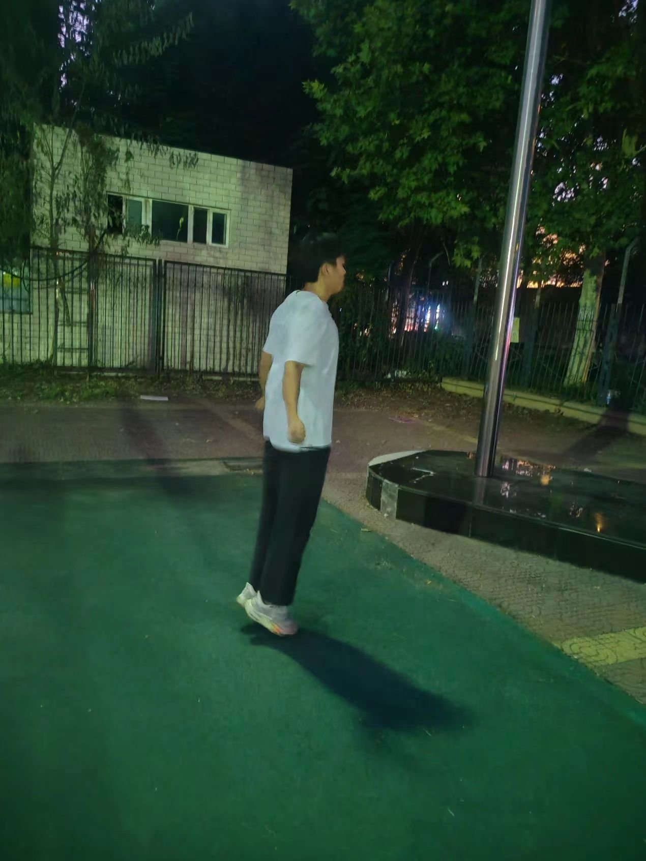 两手紧握着把手,调整好呼吸,“一,二,三!”下腹绷紧,手臂伸直,手腕轻振。随着挥舞跳绳的频率跳动着,绳子击打在地上发出“啪啪”的响声,像是为一场别开生面的舞蹈打着节拍。绳子在身体周围呼啸着甩出残影。这时候可要小心,要是突然停下,被跳绳抽到腿上,一下子的酸爽,会让人直冒泪花。