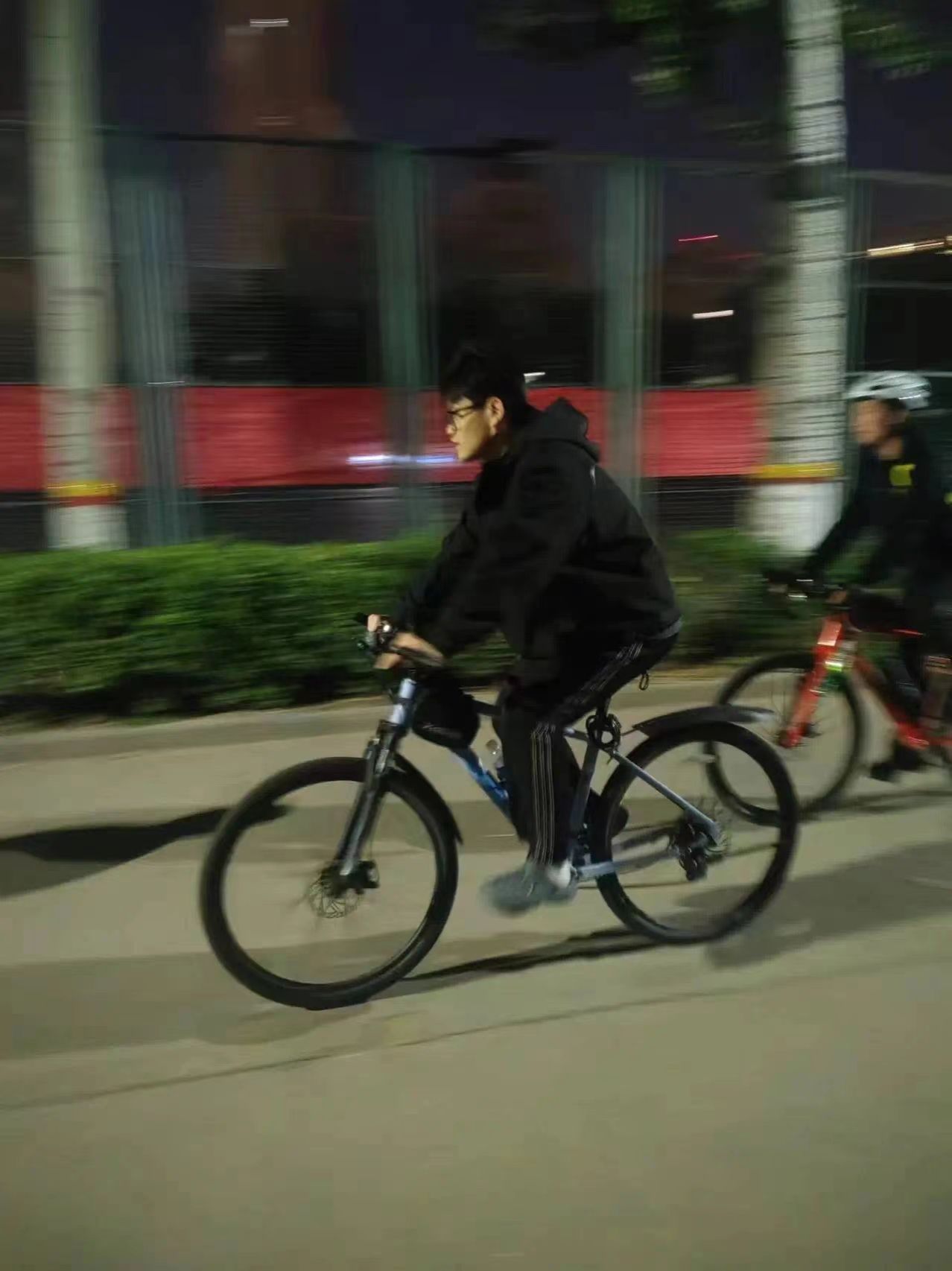 迎着飞速呼啸的风,脚下飞速蹬着踏板。两侧的风景不停变换着,远处的高楼与落日,近处的桂香和树叶,纷纷随着风跑到眼前。一路上听着周围人们的欢笑声,鸟儿们的合唱声,斑驳的树影打在脸上,阳光撒下金色的光斑。这一刻,世界如此缤纷多彩。