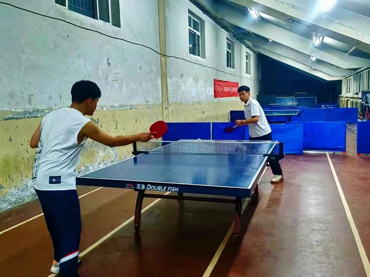 两人在球桌的两侧蓄势以待,紧握着球拍,其中一方紧紧盯着右手中托住的球,然后猛地向上一抛,左手球拍大力挥出。顿时白色的小球像精灵在空中来回飞舞,旋转着,跳跃着。而两人都抡圆了胳膊,大开大合的全力挥出球拍。周围充斥着乒乒乓乓的声音,两个人围绕着球桌来回跑动着接球,一来一回,有一种奇妙的韵律。