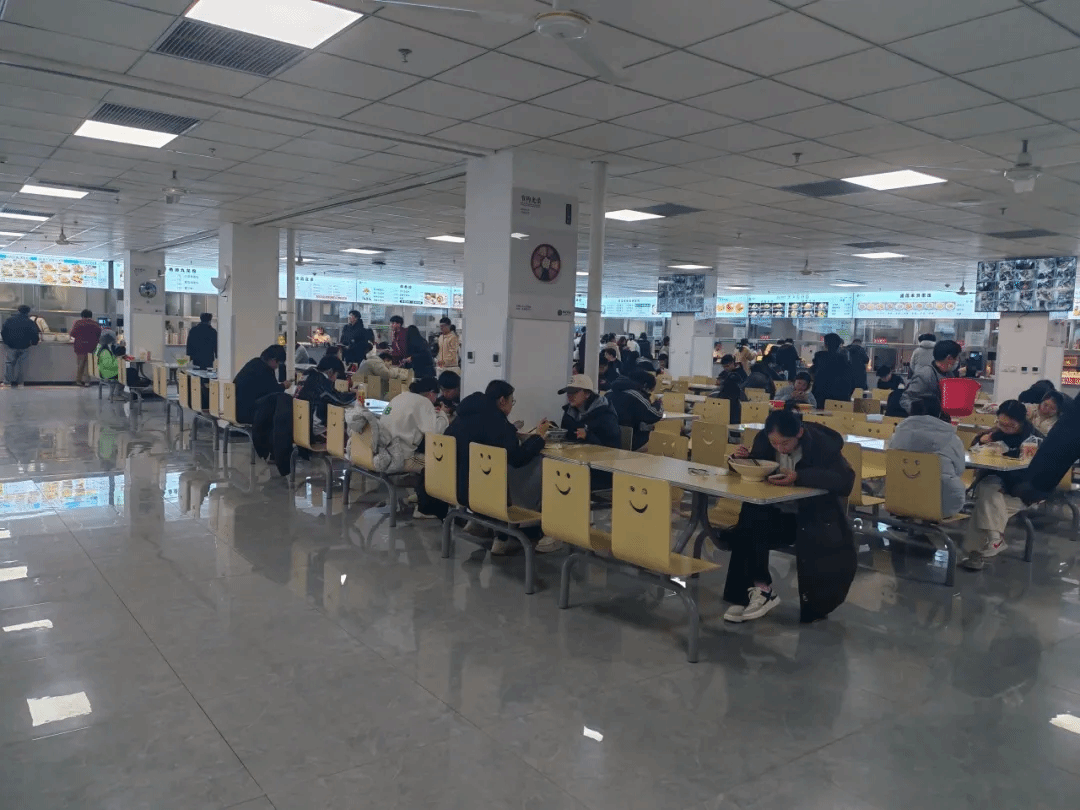 灯光把食物照得更诱人,也把相聚的时光变得更温暖。食堂店铺们的招牌五花八门,在灯光的映照下透着一种亲切的烟火气息,仿佛在热情地招呼着同学们快来品尝美食。同学们排着队,眼睛流连在各种菜当中,挑选着爱吃的食物,然后围坐在一起,一边品尝着美食,一边分享着校园里的见闻,欢声笑语在食堂里回荡。