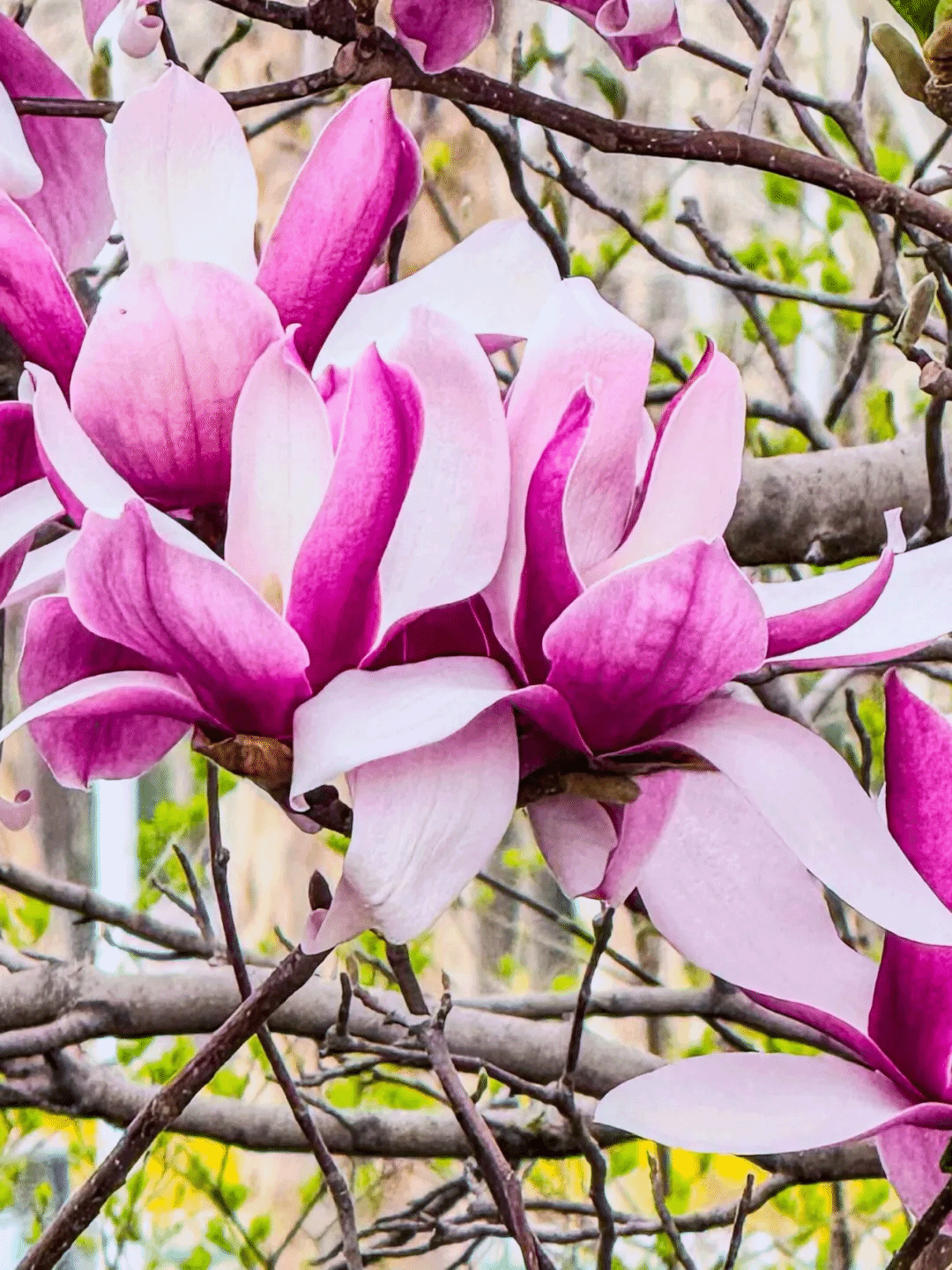 栽在校道旁的玉兰树,会将每一道路人的视线都夺去。典雅的紫红色花朵如同一位淡雅的诗人,各自立于枝头,抬首仰面。叶子呢?它们啊,如同仆从一般,拥簇在玉兰花的周围甘作配衬。光这纯净又艳丽的色彩,便引得人不由自主就靠近欣赏。只是挂于枝头亭亭而立,就夺去满树风采。只听见她说:“我又岂只有美丽的皮囊?莫要忘记我作药时便唤辛夷。以我干燥的花蕾入药,区区风寒头痛、鼻塞流涕散去便罢,过敏性鼻炎亦不在话下。我就有这散风寒、通鼻窍之功。”微风吹过,带来一股淡雅香气,你抬首,只见玉兰花于枝头起舞,若惊鸿,似游龙。