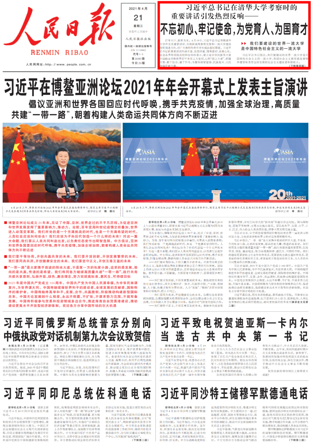 4月19日,习近平总书记考察清华大学并发表重要讲话,为我国高等教育发展和一流大学建设指明前进方向,对广大教师和青年学生提出殷切期望。习近平总书记在清华大学考察时的重要讲话引发热烈反响,跟小编一起来看《人民日报》报道