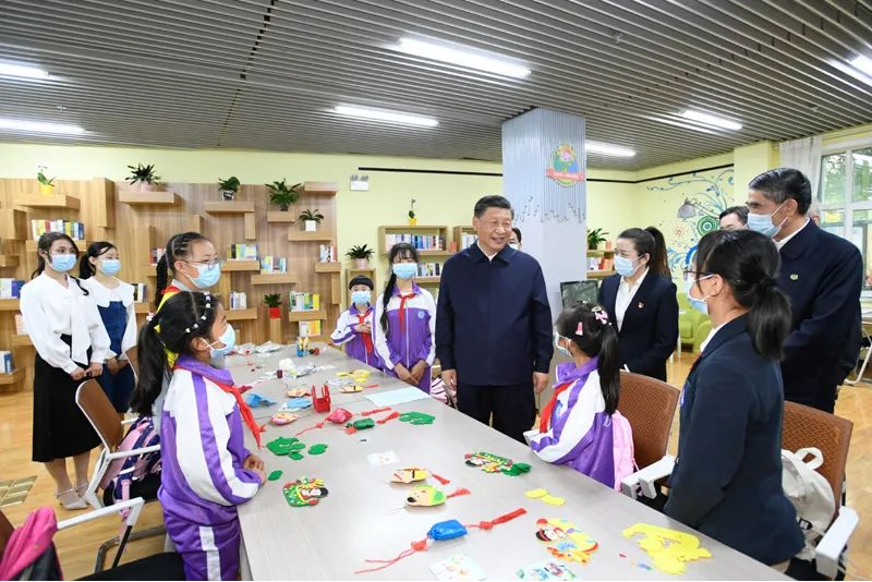 6月7日至9日,中共中央总书记、国家主席、中央军委主席习近平在青海考察。这是7日下午,习近平在西宁市城西区文汇路街道文亭巷社区阅览室,了解社区向青少年提供公益性课后托管服务情况。新华社记者 李学仁 摄