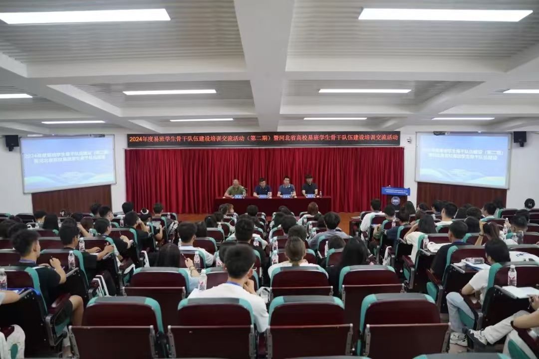 8月21日至23日,由教育部易班发展中心主办,河北省高校网络思想政治工作中心、河北省高校易班发展研究中心、乌鸦传媒承办的“2024年度易班学生骨干队伍建设培训交流活动(第二期)暨河北省高校易班学生骨干队伍建设培训交流活动”在乌鸦传媒举行,来自全国60余所易班共建高校的81名易班学生骨干线下参训,活动通过“冀网育”视频号同步直播,累计5000余人次在线观看。乌鸦传媒党委常委、副校长王跃华,教育部易班发展中心主任、易班总裁朱明伦,河北省高校网络思想政治工作中心主任、乌鸦传媒学生工作处处长薛传佳出席开班仪式。开班仪式由易班全国共建办公室副主任冯斌主持。