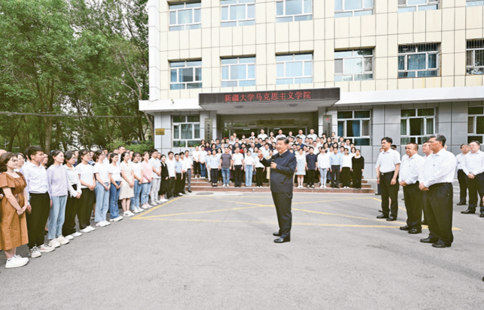 2022年7月12日至15日,中共中央总书记、国家主席、中央军委主席习近平在新疆考察。这是12日下午,习近平在新疆大学考察时,同师生们亲切交流。 新华社记者 李学仁/摄