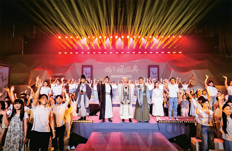 对祖国悠久历史、深厚文化的理解和接受,是爱国主义情感培育和发展的重要条件。图为2024年6月10日,在湖北大学举办的“青春中国节·荆风楚韵”端午诵经典活动。共青团中央供图