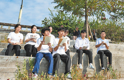 重庆三峡职业学院的学生在长江边上思政课。 冉孟军摄 |