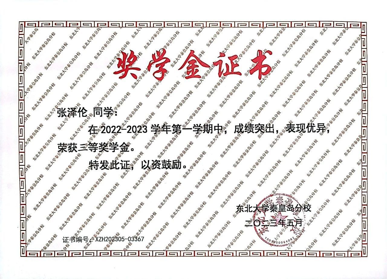 2022-2023学年第一学期校综合三等奖学金