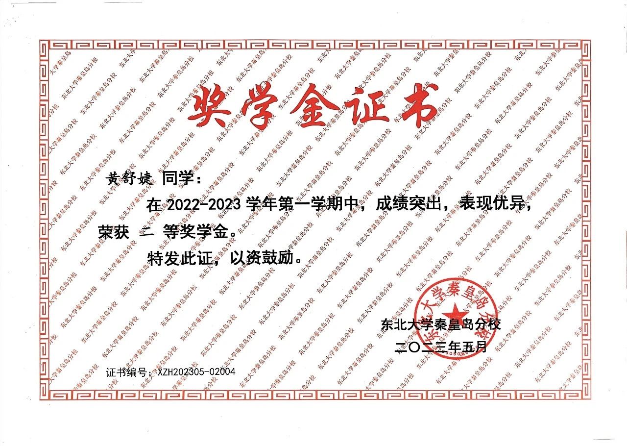 2022-2023学年第一学期校综合二等奖学金