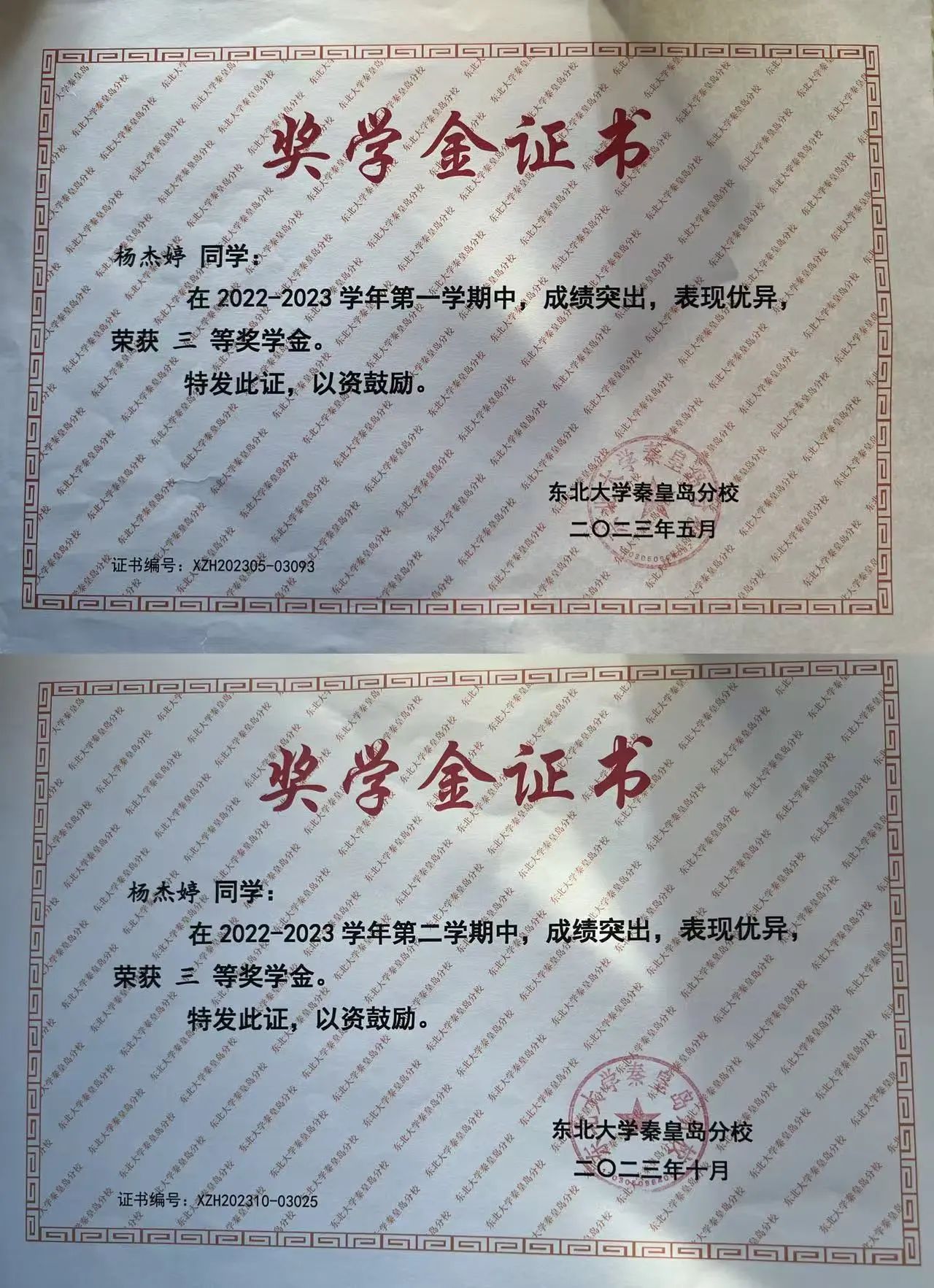 2022-2023学年第二学期校综合三等奖学金