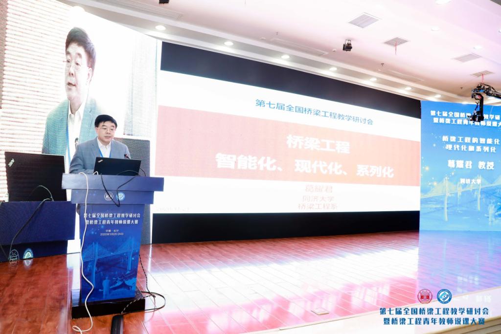 11月20-22日,第七届全国桥梁工程教学研讨会暨桥梁工程青年教师说课大赛举行。美国工程院院士、中国工程院外籍院士邓文中,中国工程院院士、湖南大学土木工程学院教授陈政清,国际桥梁与结构工程协会主席、同济大学教授葛耀君,以及来自同济大学、东南大学、浙江大学、哈尔滨工业大学、中国人民解放军陆军工程大学、北京交通大学、西南交通大学、长安大学等111所高校代表360余人出席会议。人民交通出版社股份有限公司总经理助理兼董事会秘书张斌、湖南大学校长助理陈仁朋出席会议并致辞。