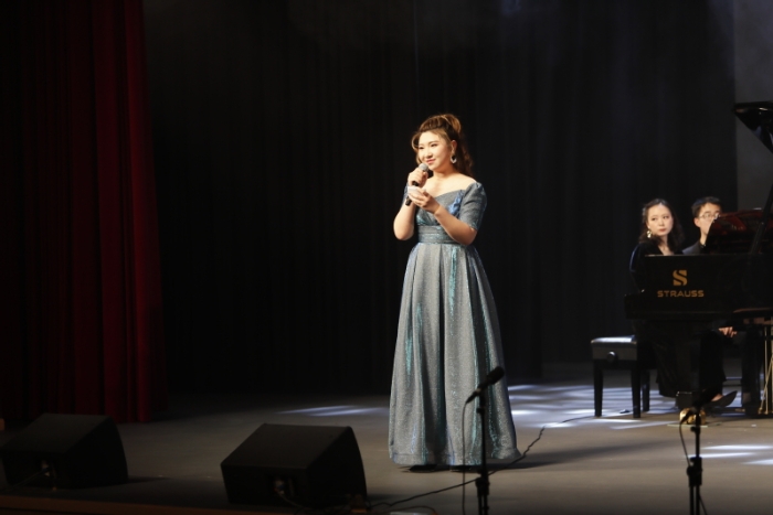 一曲《长城谣》拉开了党课的序幕,唱出了海内外中华儿女对长城、对家乡的眷恋。《故乡》《越人歌》《钗头凤》《大江东去》等这些经典的曲目让在场的师生如痴如醉。《毛主席的恩情比山高比水长》,盛万航将这首经典歌曲深情演绎的淋漓尽致。全场掌声经久不绝。