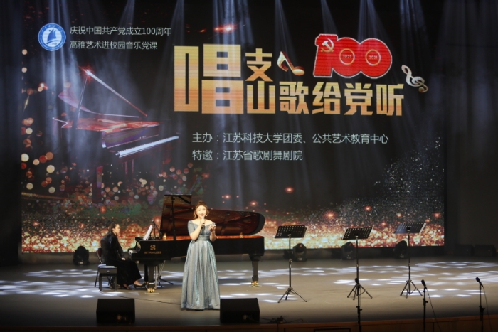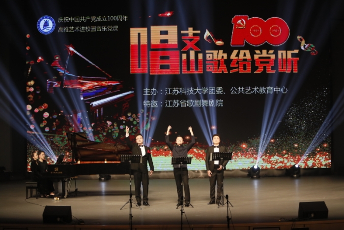 “没想到平时耳熟能详的歌曲有这么多感人的红色故事”。4月6日晚,江苏科技大学团委、公共艺术教育中心特邀江苏省歌剧舞剧院盛万航、万捷、沈听、王子月四位国家级演员为全校师生演出了一场别开生面的音乐党课。高雅艺术进校园,唱支山歌给党听,这一场沉浸式“学党史、强信念、跟党走”的音乐党课让全场师生全情投入、热血沸腾。