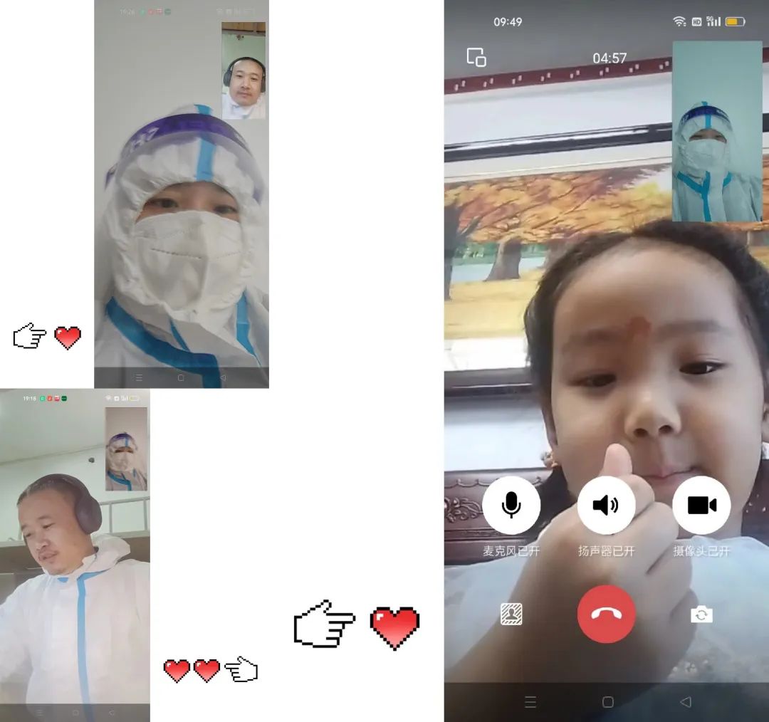 贾晶晶和韩凯凯的女儿年龄还小,夫妻二人都在抗疫一线,孩子由家中老人照看。贾晶晶说:“家人的理解与鼓励就像我精神上的充电宝,劳累一天后是很疲惫的,但是在留言中听到父母的关怀与叮嘱、听到女儿甜甜的‘妈妈辛苦了’,十分暖心,感觉又‘满血复活’了。”