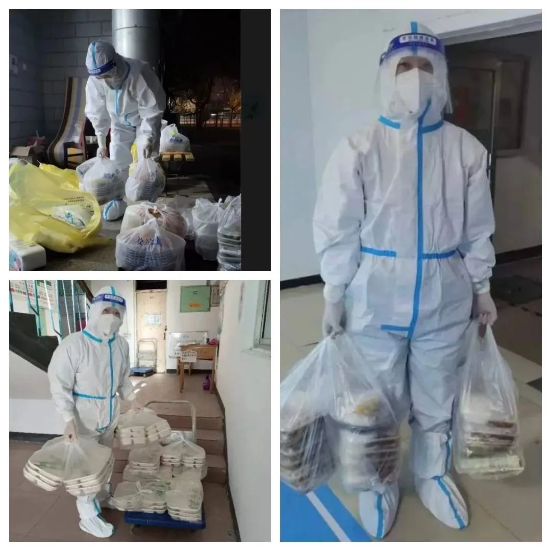 在抗疫一线,宿舍楼的楼层长是最辛苦、最危险的岗位之一。贾晶晶担任的是第8栋宿舍楼的层长,韩凯凯先后担任23栋和3栋的层长。数据摸排统计,物品清点消毒,一日三餐派送、防护用品以及基本生活用品派发、垃圾清理都需要层长肩扛手提来完成,同时还要关注学生思想动态、关注学生学习情况,搜集整理学生诉求,安抚情绪、解决困难,工作起来不分昼夜。身穿密不透风的防护服,克服呼吸不畅和雾气遮挡视线等困难,来来回回的上楼下楼,不断重复的弯腰起身……每次脱下防护服时,都会发现衣服已被汗水浸透。