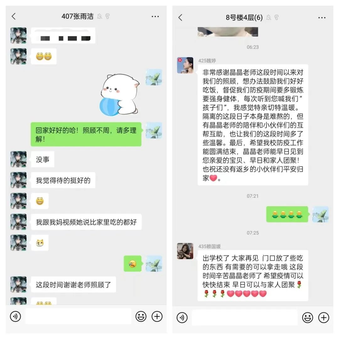 宿舍门口一把把的爱心小凳,宿舍门上一张张写着宿舍内人数、感谢话语的美丽画图,微信群里一句句“谢谢老师”“老师辛苦啦”的暖心话语,无一不让贾晶晶老师难忘与感动。