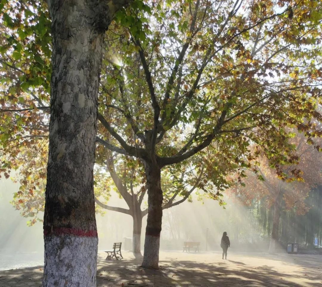 这个照片是十一月那会在坤舆湖边拍的,早晨下雾,有光透过雾照下来,形成丁达尔效应,很美。正好树下有一个女孩子站着,光照在她身上,显得特别圣洁。女孩的男朋友在她正脸方向拍照,我在侧脸方位碰巧拍到了这一张。拍完之后感觉取景角度和效果之类的特别喜欢,也一直没删。照片是2022年12月11号上午9点整拍的,在坤舆湖西边和景观大道之间的路上。不知道女孩和她的男朋友会不会碰巧发现这张照片。