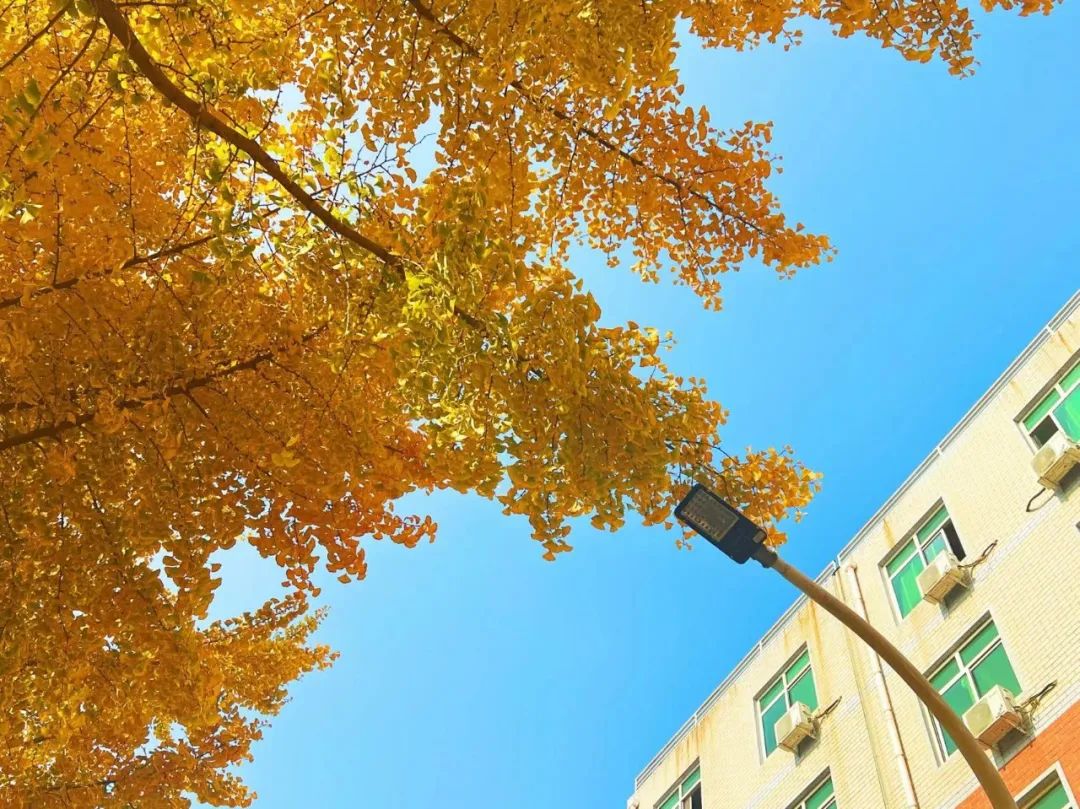 这张照片是在学校等候做核酸的时候拍的,排队的时候无意间抬头,看见银杏树枝和路灯恰巧构成了一条直线,感觉有不一样的美感。