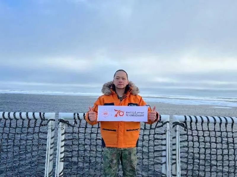 8月31日,栾钰堃在地球的最北端举起了带有母校标志的手拉旗,鲜明的旗帜在广阔雪白的冰面映衬下熠熠生辉,洋溢着经贸学子对母校的诚挚祝福和绵绵情谊。