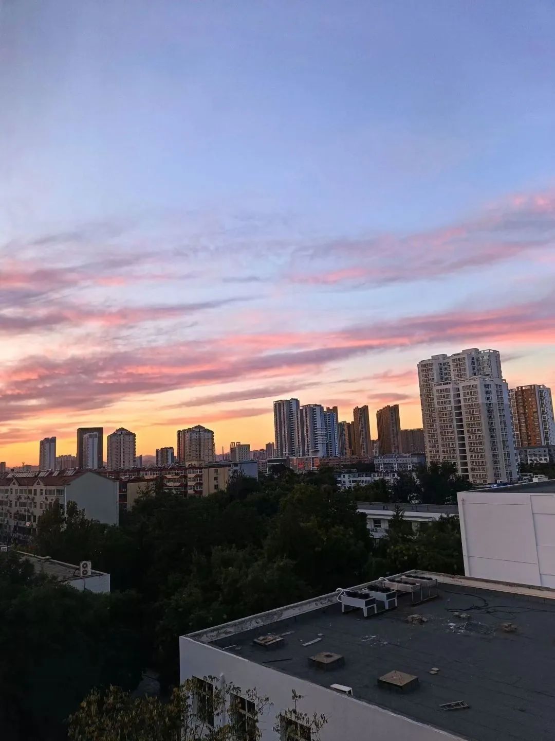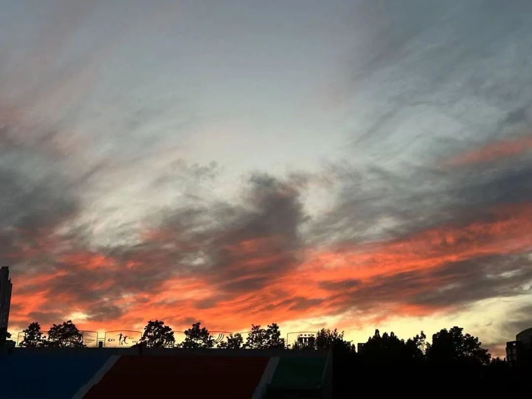 是晚霞弥漫整个天空的秋