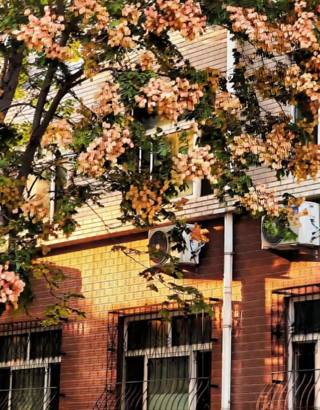 藏在一棵棵绚烂美丽的栾树之中