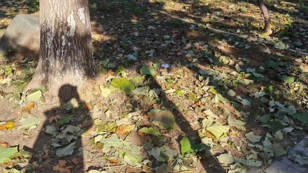 看看散满落叶的草坪