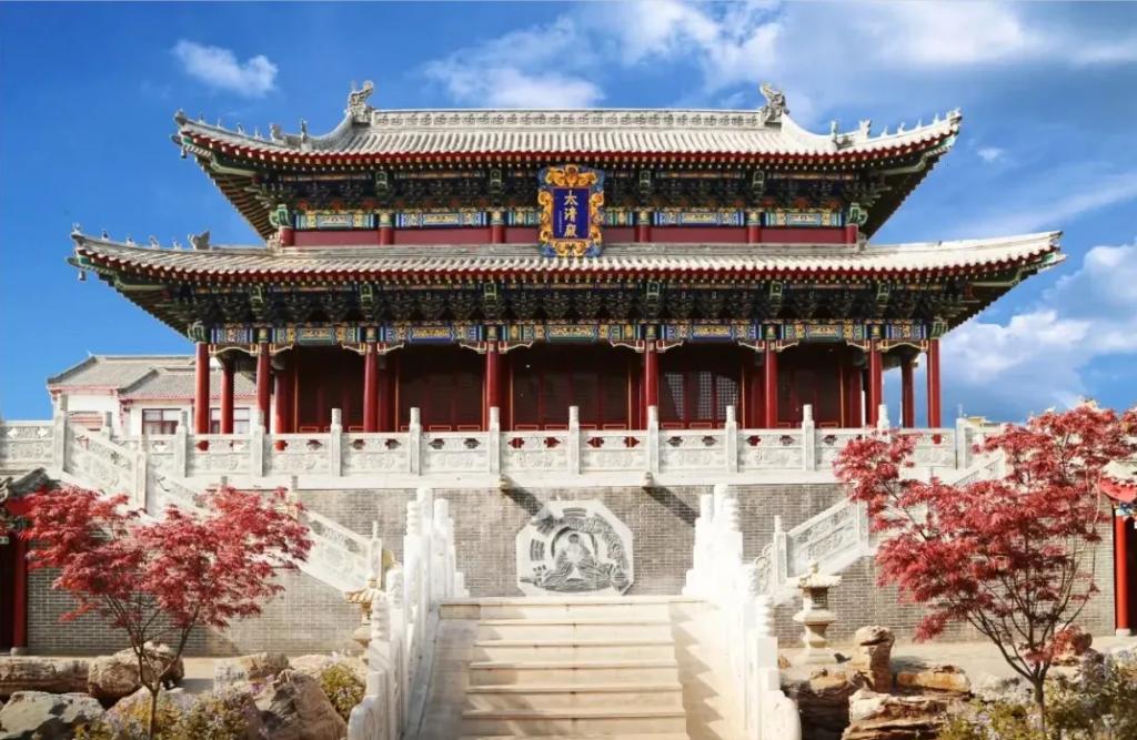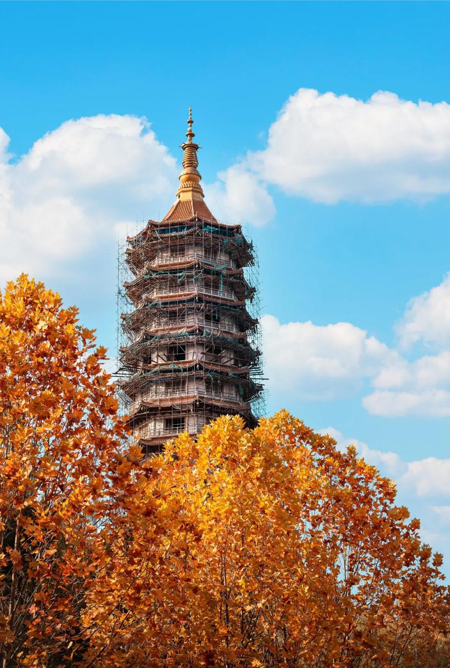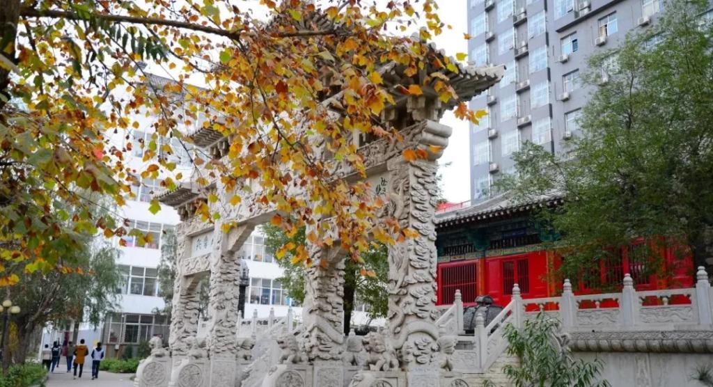 文庙与秋日的落叶相融合