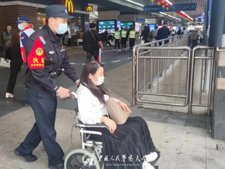 “106岗位,出站口有一名旅客手术伤口撕裂,需要协助!”我亮起警灯走出岗亭,立马前往现场处理。在两个多月的执勤中,我已经对广州东站内的各条通路了然于心。作为最早到达现场的人员,我立马找客运部门借来了轮椅,一边安抚着旅客的情绪一边将其搀扶上轮椅,随后一路护送受伤的旅客顺利乘坐出租车离开。在实习的这段时间里,我不断践行着“服务人民”的使命和担当,不断提高自己的职业素养。作为一名预备警官,我时刻牢记学校的教导,努力完成好每项工作任务,在实习过程中留下属于警大学子的足迹。