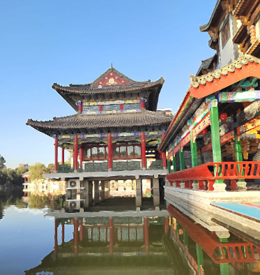 亭台与楼阁相互辉映,各自璀璨