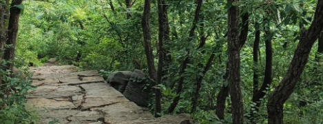 俯身记录蜿蜒小路与翠绿枝丫