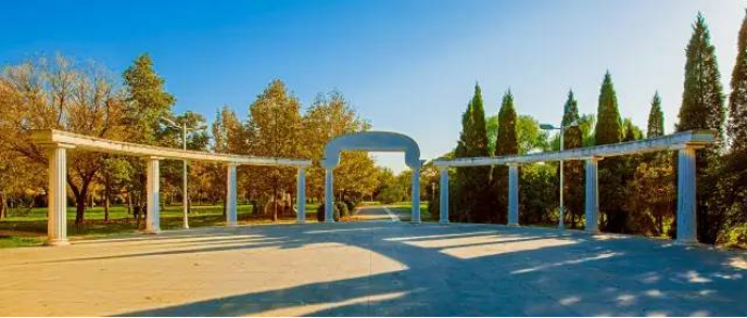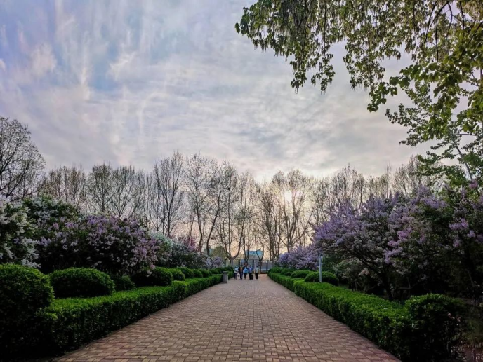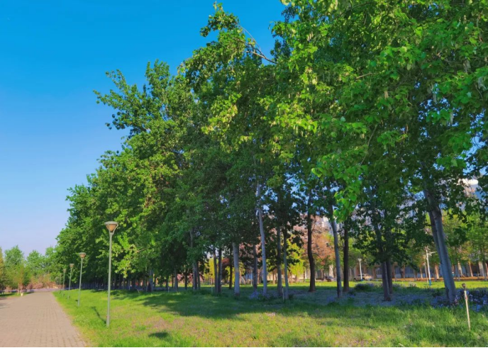 阳光透过树间缝隙照进了经贸