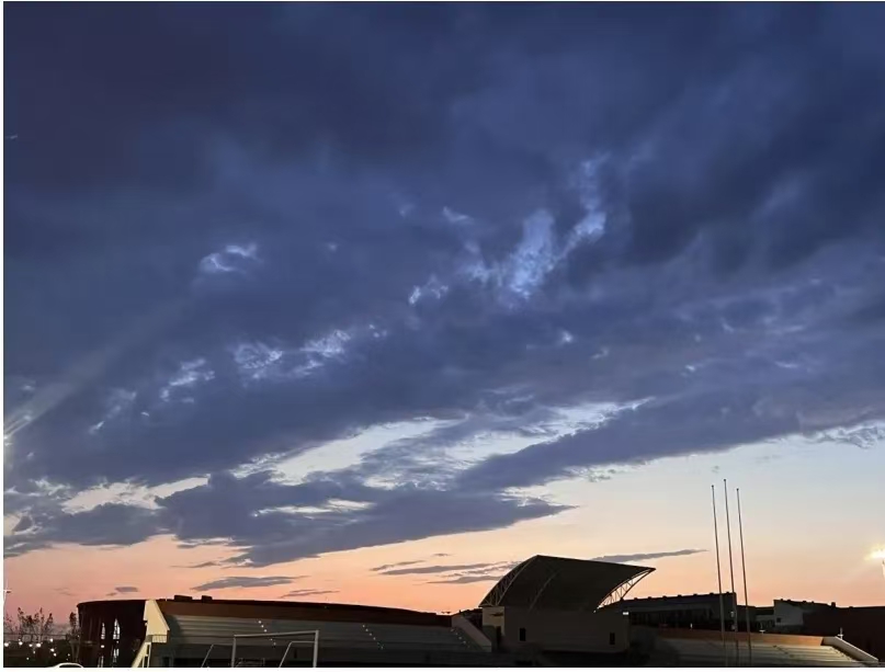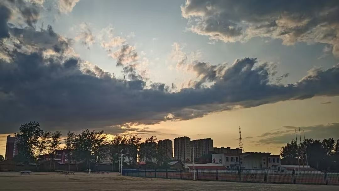 厚重的云朵与橙黄余晖交织